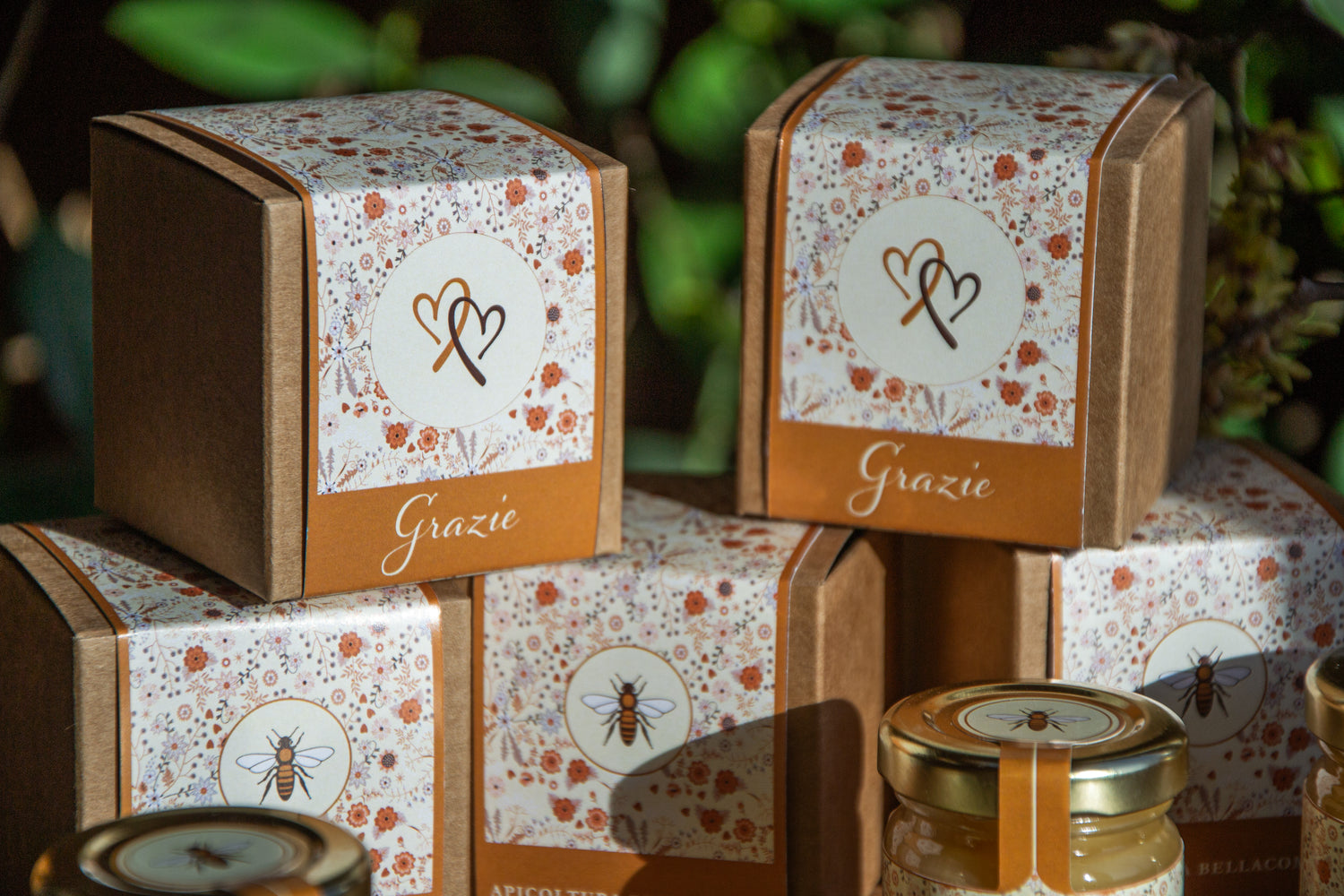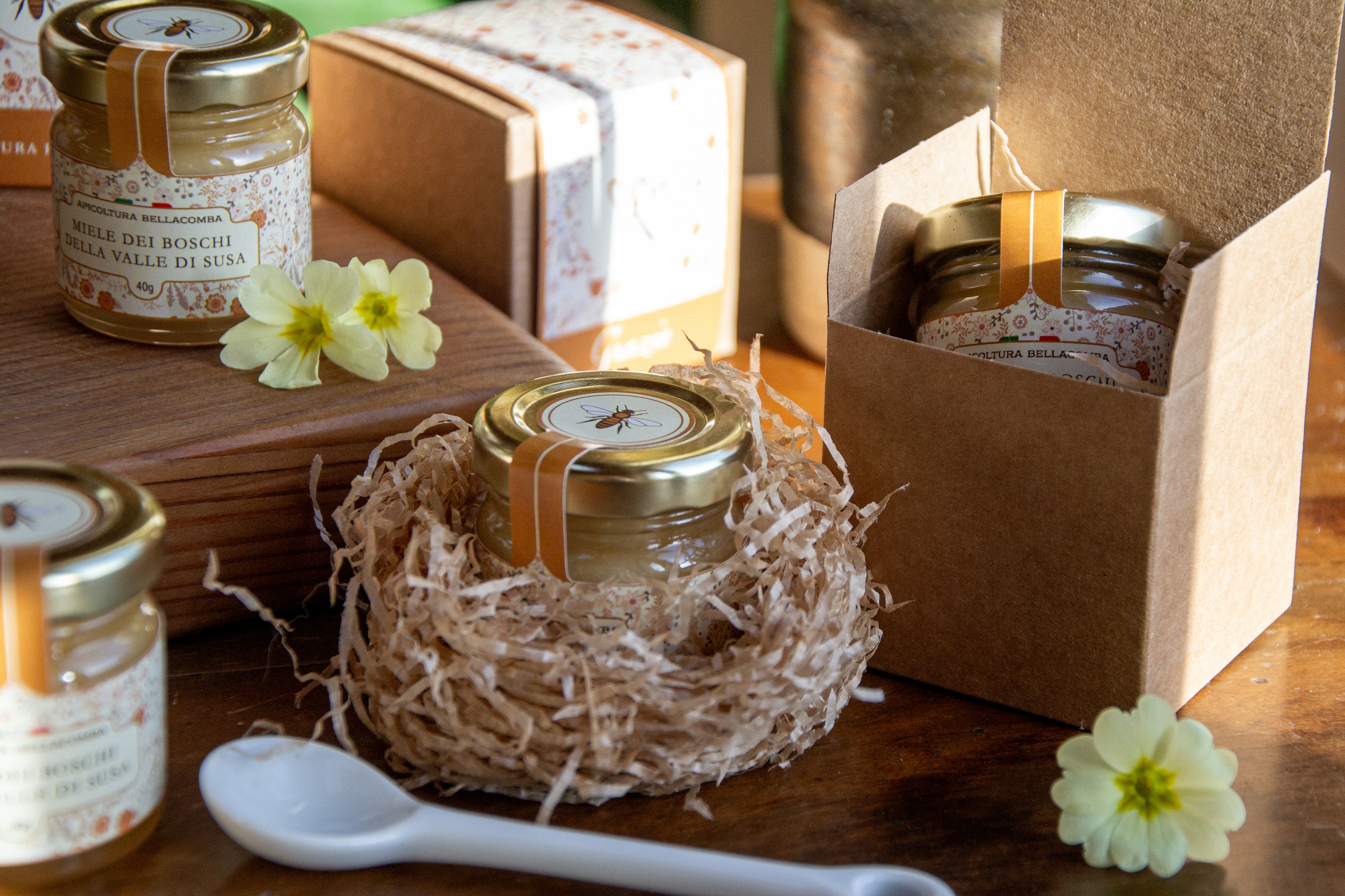 - Vasetto di miele 40g con etichetta di pregio + scatolina in grafica coordinata